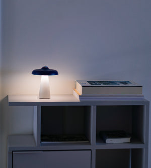 Die lukuli mora Tischleuchte verbindet minimalistisches Design mit höchster Funktionalität. In edlem Kobaltblau und Weiß gehalten, ist sie ein zeitloser Blickfang, der in jedem Raum Akzente setzt.